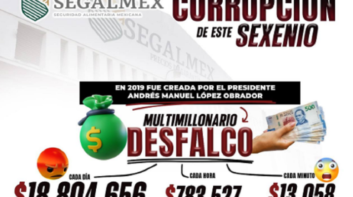 CIUDAD DE MÉXICO, Méx.- Andrés Manuel López Obrador no ha combatido la corrupción en México y, por el contrario, ha propiciado que florezca y se ramifique con mayor fuerza, como ocurrió en la dependencia de Seguridad Alimentaria Mexicana (Segalmex), organismo creado bajo su mandato y el cual ha representado la burla más grande a los mexicanos.
