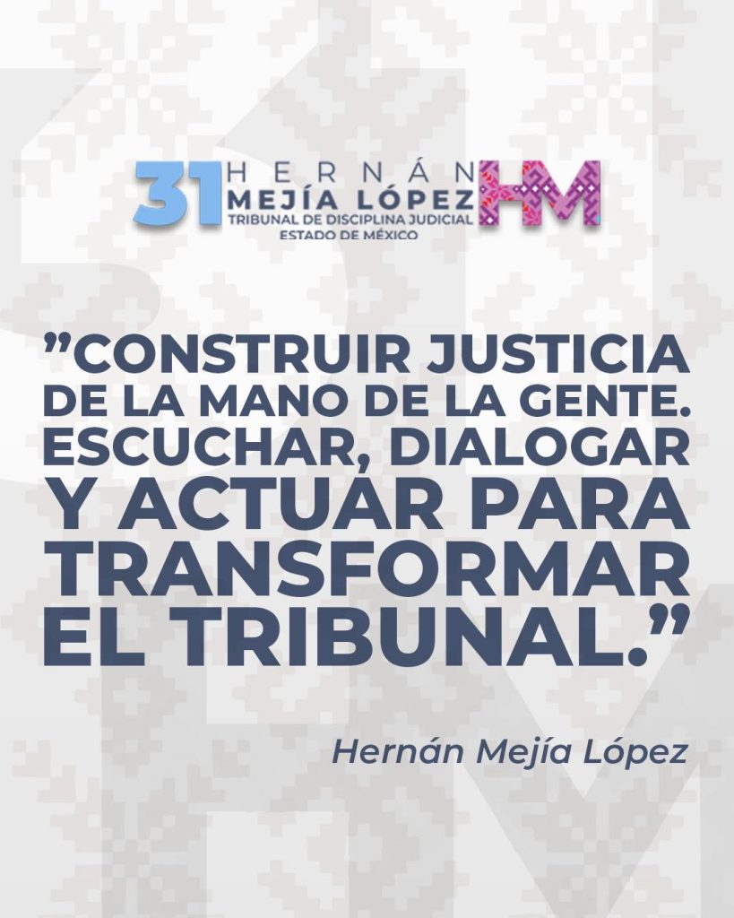 De manera contundente Hernán Mejía señala: “Mexiquense, no puede haber Derecho ni ley sin justicia, Sin prudencia, y sin sensatez, el nuevo tribunal de disciplina Judicial debe ser integrado con Inteligencia con honorabilidad, y por supuesto, con experiencia al servicio del pueblo del Estado de México; somos más de 18 millones de mexiquenses qué exigen una justicia imparcial neutral, pronta y auténticamente expedita.