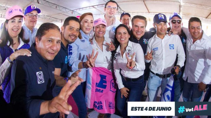 CUAUTITLÁN IZCALLI, Méx.- La candidata a la gubernatura por la coalición “Va por el Estado de México”, Alejandra del Moral, realizó su primer cierre de campaña en el municipio de Cuautitlán Izcalli, en compañía de su familia y las dirigencias, nacional y estatal, del Partido Acción Nacional.