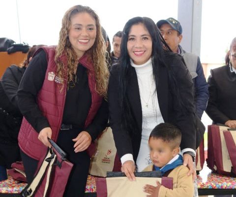 En Tenango del Aire, Edomex; Entregan paquetes escolares a las infancias del Jardín de Niños Vicente Suárez de Santiago Tepopula.
