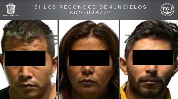 CHIMALHUACÁN, Méx.- Agentes de la Fiscalía General de Justicia del Estado de México (FGJEM) detuvieron a tres personas y aseguraron envoltorios con droga, durante