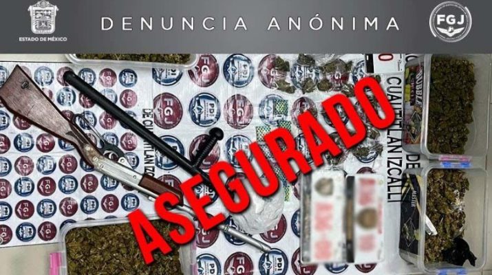 TULTITLÁN, Méx.- Agentes de la Fiscalía General de Justicia del Estado de México (FGJEM) detuvieron a dos personas y aseguraron droga, durante cateo efectuado