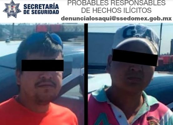 ECATEPEC, Méx.- En atención oportuna a una denuncia ciudadana, elementos de la Secretaría de Seguridad (SS) detuvieron a dos individuos por su posible participación