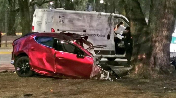 Presuntamente el Mazda color rojo era conducido a exceso de velocidad  cuando el conductor perdió el control y se estrelló en el camellón.