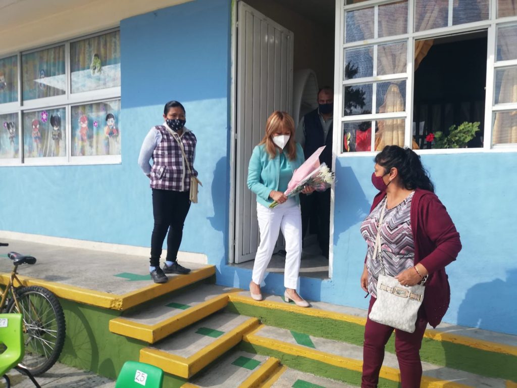 La diputada por Nicolás Romero, Ángeles Dávila Vargas, entregó pintura e impermeabilizante al Jardín de Niños “Filiberto Navas”, en la colonia San Juan Tlihuaca, con el propósito de ayudar a los trabajos de rehabilitación; como una de los actividades prioritarias para el sector educativo de la entidad mexiquense.