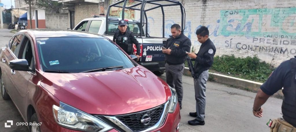 Los uniformados municipales, en coordinación elementos de la Secretaría de Seguridad del Gobierno del Estado de México, realizaban recorridos de rutina en Cabecera Municipal, en donde se percataron de un vehículo sospechoso a quien le marcaron el alto para realizar la revisión habitual, encontrando en poder del conductor lo reportado por las autoridades, y puesto a disposición de las autoridades ministeriales, de acuerdo a los derechos del individuo.