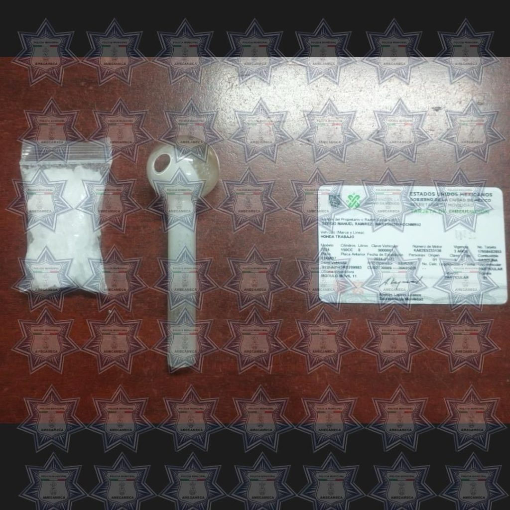 *Al descender de la unidad, y hacer la revisión con los protocolos establecidos se informó que el individuo poseía elementos de características similares a un enervante conocido como “cristal”, una pipa y billetes parecidos al dinero en efectivo.