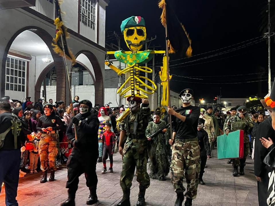 Este espectacular paseo con La Catrina formó parte de un amplio festival cultural que se realizó de la mano con una gran muestra de altar que fue instalada en los arcos de la presidencia municipal.
