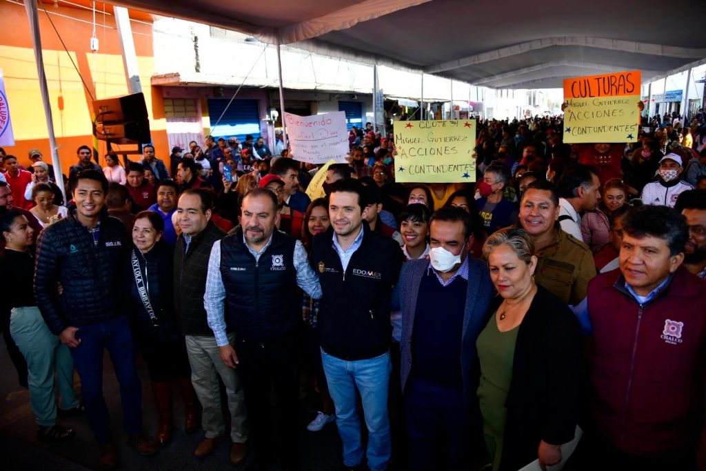 El Presidente Municipal, Miguel Gutiérrez recibió al Secretario de Desarrollo Urbano y Obras Públicas del Gobierno del Estado de México, Rafael Díaz-Leal Barrueta; al Secretario de Movilidad Estatal, Luis Gilberto Limón Chávez; a la Directora General del Sistema de Transporte Masivo y Teleférico del Estado de México, Rosa María Zúñiga Canales; al Presidente Municipal de Valle de Chalco Solidaridad, Armando García Méndez y al Director General de Infraestructura Hidráulica de la Comisión del Agua del Estado de México, Lenin Ramírez Villanueva, para dar el banderazo de inicio de la obra de Construcción del Colector Solidaridad, un proyecto masivo, con una inversión superior a los 115 millones de pesos, que busca mitigar las afectaciones por la acumulación de aguas pluviales y residuales en 22 comunidades del municipio de Chalco, en beneficio de más de 150 mil habitantes.