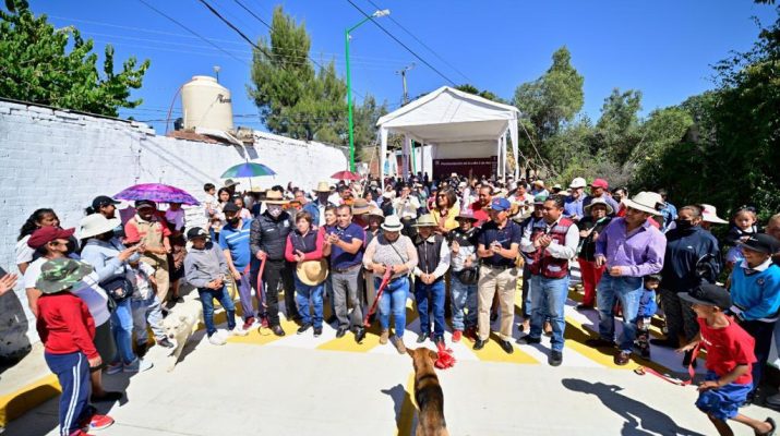 En Chalco, Edomex; Entrega alcalde Miguel Gutiérrez, pavimentación de calle 2 de Abril en Huexoculco.