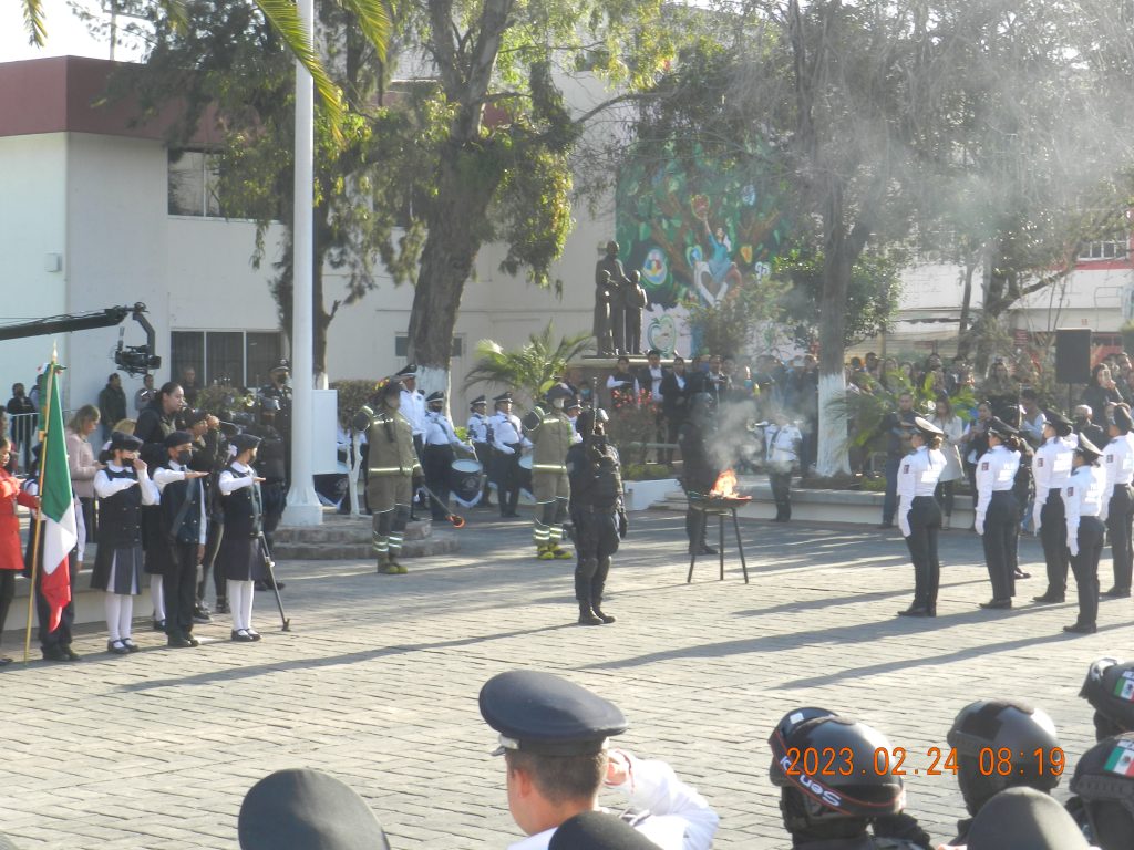 Desde temprana hora en la explanada municipal, se realizó este evento en donde el alcalde, Felipe Arvizu flanqueado por su cuerpo edilicio, directores, y colaboradores de esta administración 2022-2024, rindieron honores a la bandera con la ordenanza de ley; posteriormente, fue arriada de la monumental hasta bandera el lábaro patrio que culminó su vida útil; se rindió los honores de ordenanza y posteriormente fue incinerada delante de todos los asistentes a este evento.