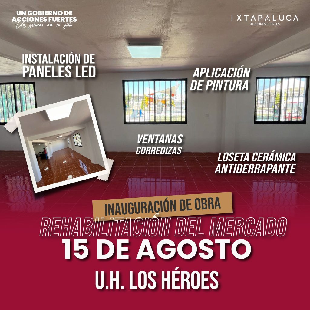Cabe destacar que esta obra se hizo de manera integral; con una remodelación estructural, para garantizar la seguridad y comodidad de los usuarios; con lo que no sólo se busca mejorar la infraestructura física del mercado, sino también promover el desarrollo económico y social de la comunidad de la Unidad Habitacional Los Héroes.