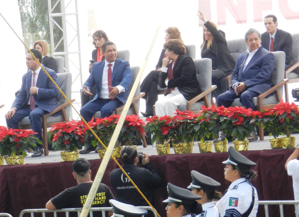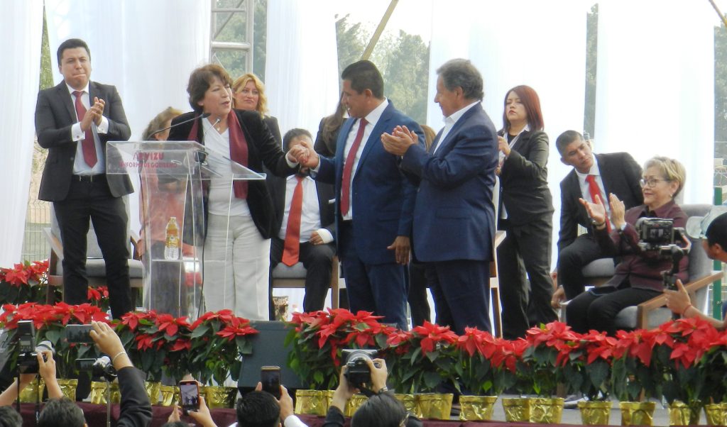 Luego del ingreso de Presidente Municipal Constitucional a las instalaciones de la Ciudad Deportiva, donde fue ovacionado por el respetable público; y tras realizar los honores a la bandera correspondientes en este cabildo solemne, el alcalde entregó el informe de gobierno al representante del Gobernador del Estado de México, Alfredo del Mazo Maza, en la persona de Rogelio Tinoco García, con la distinguida presencia del Senador Higinio Martínez Miranda; la Presidenta del Comité Estatal de Morena, Martha Guerrero Sánchez; y la destacada presencia de la también senadora de la entidad, Maestra Delfina Gómez Álvarez.
