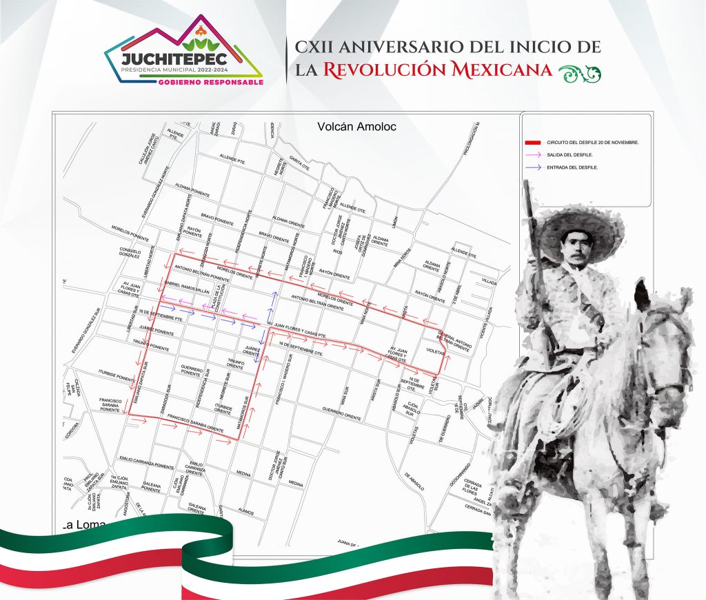 El gobierno municipal encabezado por la alcaldesa Marisol Nava Linares, junto con su cabildo, informan a la ciudadanía en general sobre la ruta que será recorrida durante el Desfile con motivo del CXII Aniversario del inicio de la Revolución Mexicana, en la cabecera municipal.