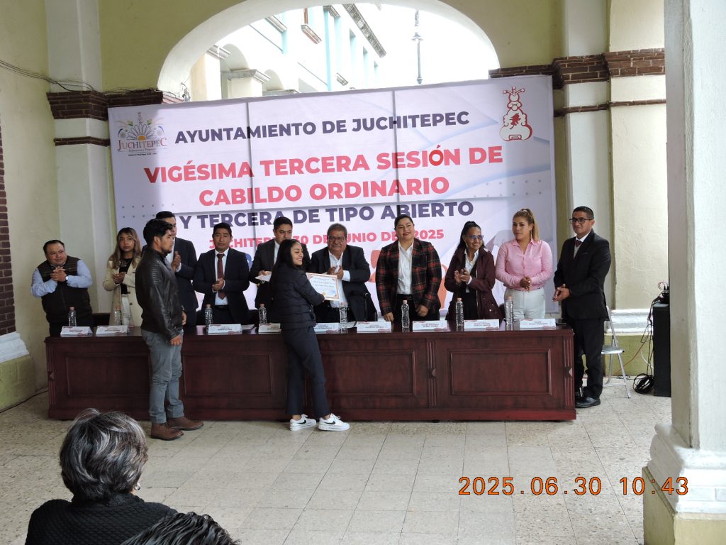 En la tercera sesión ordinaria de cabildo abierto, celebrada en los arcos de la explanada municipal, el alcalde José Juan Calvo Fernández, su cuerpo edilicio en pleno; la Síndica Municipal Ana Laura Saavedra Ramírez; y el Secretario del Ayuntamiento Gabriel Nery Balbuena, reafirmaron su compromiso con la participación ciudadana y el fortalecimiento al proyecto municipal, al tomar importantes acuerdos que responden directamente a las necesidades de la comunidad.