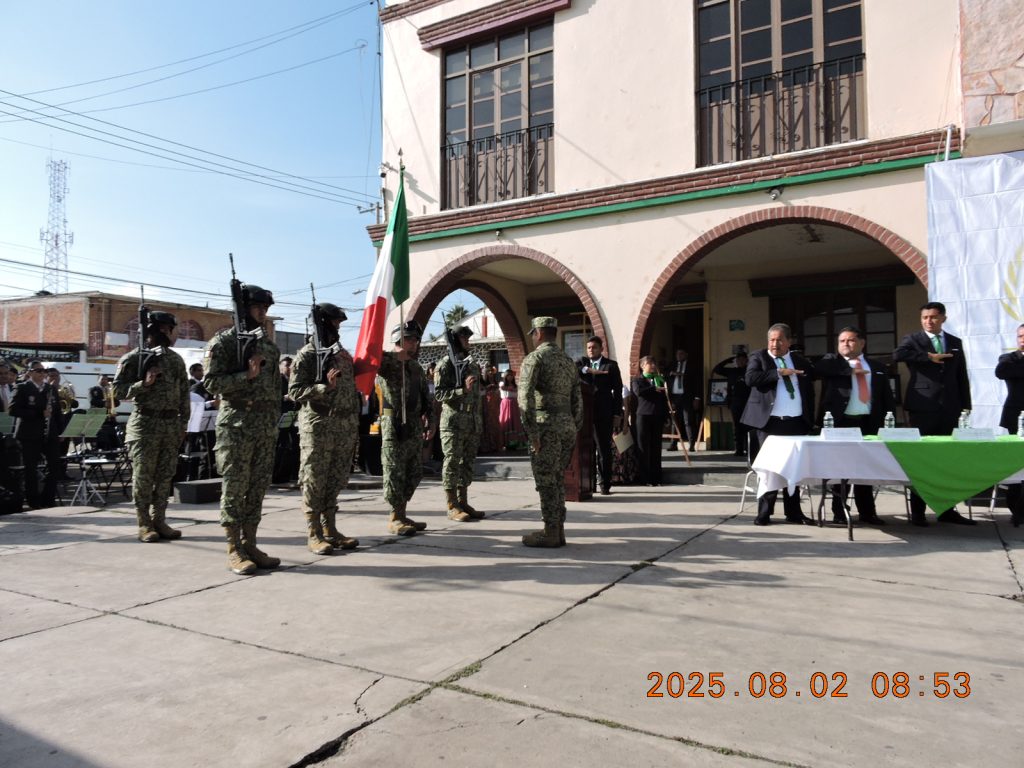 El Gobierno Municipal encabezado por el alcalde de la demarcación Pepe Gómez Hernández con su cabildo en pleno y distinguidas personalidades, entre quienes destacaron autoridades auxiliares, mandos Ejidales, la Diputada Local Itzel Correa de La LXII Legislatura del GEM, la Presidenta del DIF Municipal, Candy Guadalupe Aguilar Camacho, se realizó el evento cívico por el 182 aniversario que fue elevada a rango de Municipio Libre y Soberano un día como hoy 02 de Agosto del año 1843.