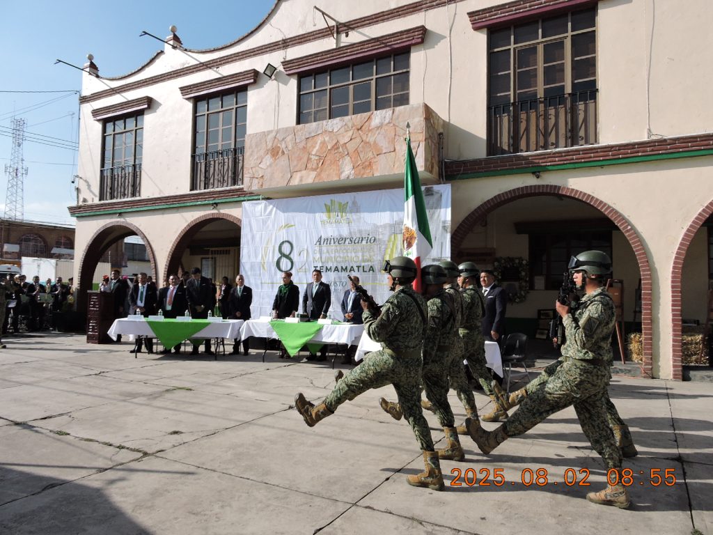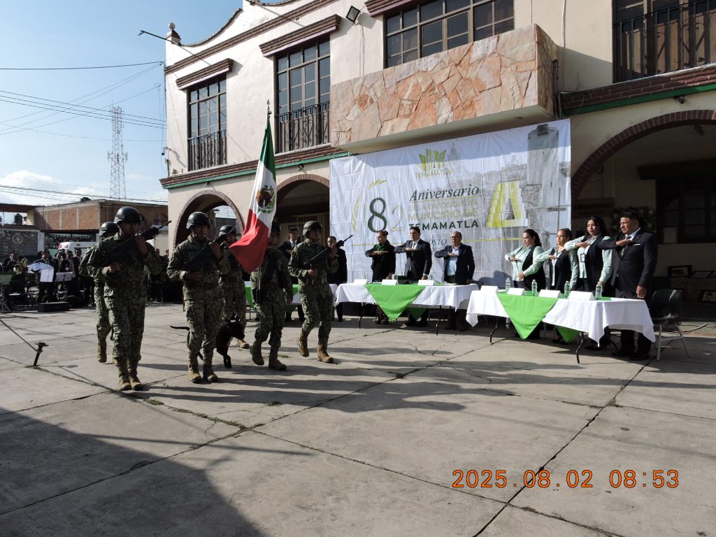Los honores de ordenanza rendidos a los símbolos patrios, fueron realizados con la participación de la escolta del Campo Militar, la Banda Sinfónica del GEM y la Banda de Guerra de este municipio, dando inicio a esta celebración en acto cívico donde se detalló que un dos de agosto del lejano año de 1843, quedó instalado el primer Ayuntamiento legal de Temamatla, dando oficialmente su nombramiento de Municipio libre y soberano a Temamatla Estado de México.