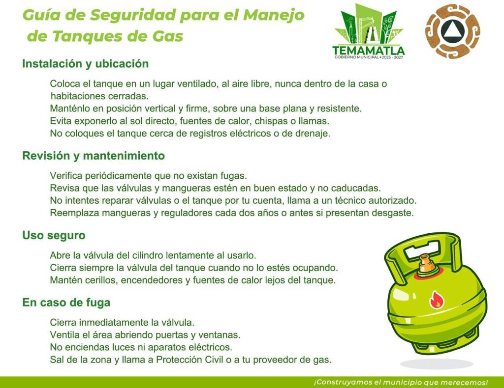 El Presidente Municipal Constitucional Pepe Gómez, hizo un llamado a la ciudadanía para que, al momento de recibir un cilindro, revise que tenga las condiciones adecuadas y reporte cualquier anomalía tanto a Protección Civil como a la empresa proveedora; de igual manera, exhortó a realizar un manejo responsable dentro de las viviendas para evitar riesgos e incidentes.