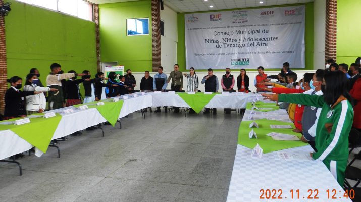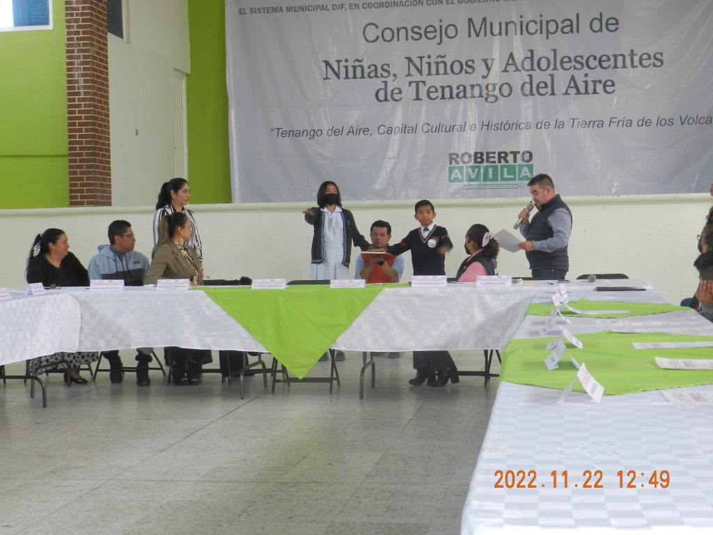 En un hecho sin precedentes en este municipio de Tenango del Aire, el Presidente Municipal Constitucional, Roberto Ávila Ventura, junto con su cuerpo edilicio, y la Presidenta Honoraria del Sistema Municipal para el Desarrollo Integral de la Familia (DIF), Johanna Fernández Sánchez, se tomó protesta al Consejo de Niñas Niños y Adolescentes, para garantizar su participación dentro del Gobierno Municipal.