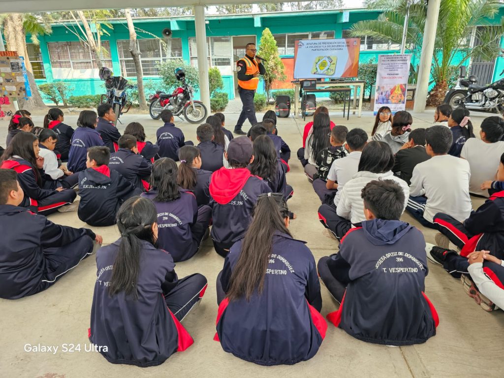 Para dar inicio a esta campaña de difusión y fortalecimiento de la cultura y concientización, se implementó en días pasados en la escuela secundaria oficial N° 396 «Josefa Ortiz de Domínguez» el programa relacionado con cultura vial, para trabajar con las niñas niños y adolescentes de la comunidad, para evitar que a temprana edad conduzcan vehículos automotores sin las medidas de Seguridad preventivas y con los permisos de las autoridades correspondientes.