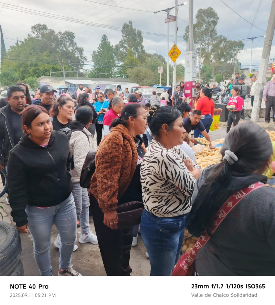 En el lugar estuvieron presentes los hermanos Celestino, Jenny, Alberto, y Raquel Barrera Méndez, quienes entregaban los productos que vinieron directamente del campo para las y los habitantes de Valle de Chalco, acotando que este grupo de personas que apoyan a la ciudadanía en general, realizan este tipo de donaciones periódicamente en comunidades de la región.