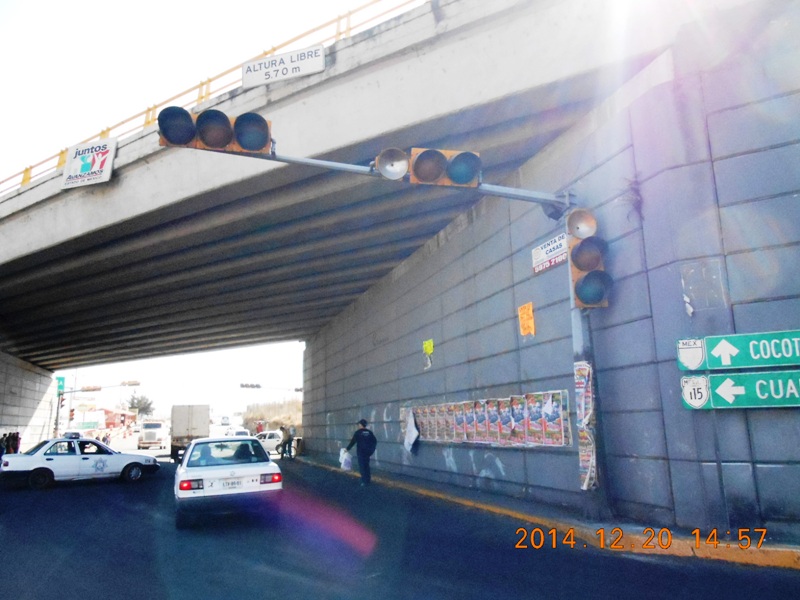 Sobre la carretera federal 115, México Cuautla, a altura del Puente del Cedral, que es el acceso al municipio de Cocotitlán y a la Unidad Habitacional “Los Álamos”, del municipio de Chalco; justamente en los límites territoriales de estos municipios, siguen ocurriendo accidentes automovilísticos, sin que ninguna autoridad del gobierno del Estado de México, ponga remedio a estos semáforos que tiene al menos o quizá más, de 15 años inservibles.
