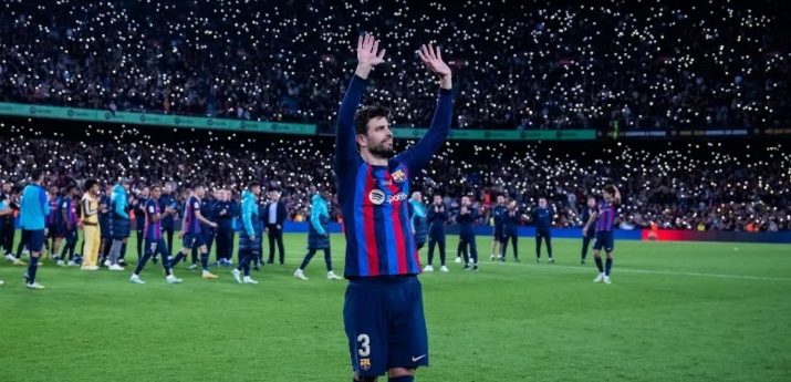 El defensa Gerard Piqué se despidió del Camp Nou con un homenaje y su Barcelona líder provisional de La Liga Santander tras imponerse por 2-0 al Almería.