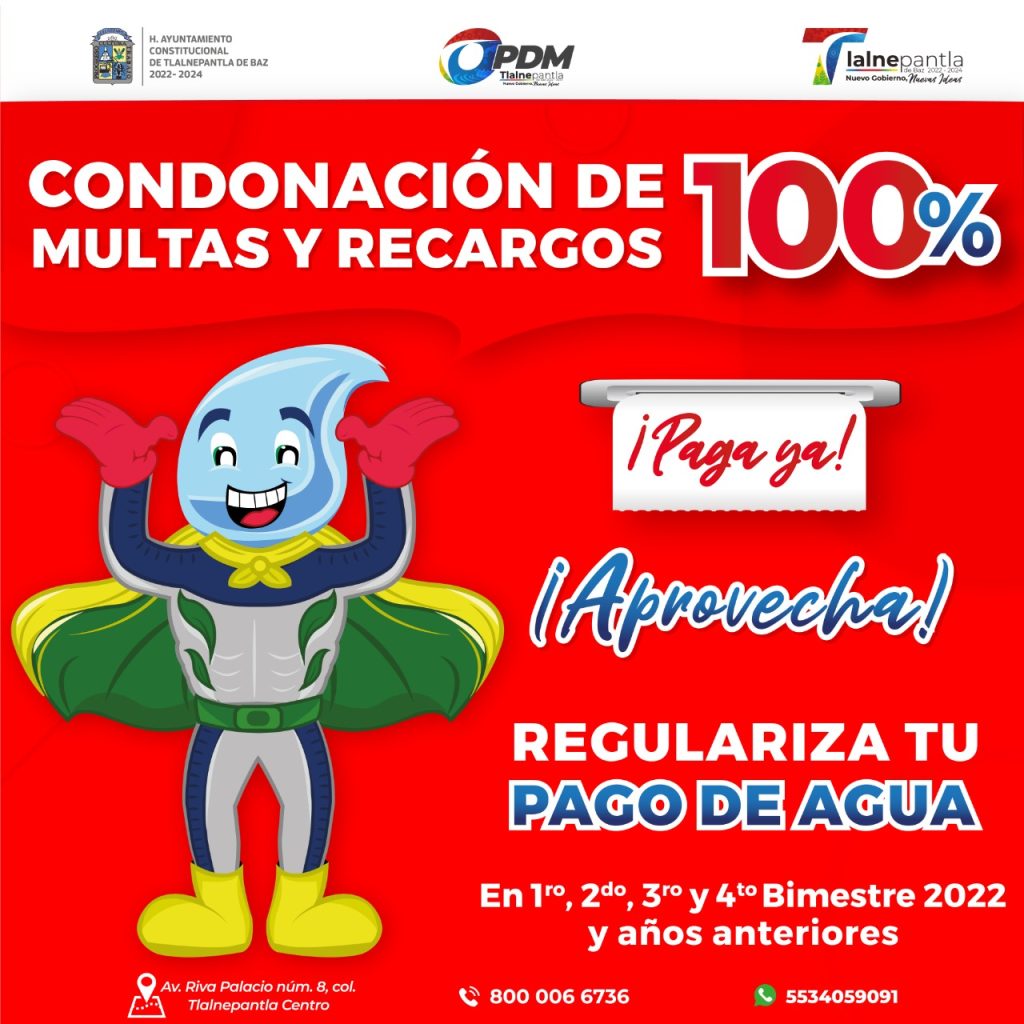 TLALNEPANTLA, Méx.- El presidente municipal de Tlalnepantla de Baz, Tony Rodríguez, aprobó, a través del Organismo del Agua OPDM, la condonación de multas y recargos en el pago del agua.